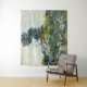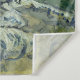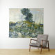 Las Rocas. Vincent van Gogh. Paisaje en fríos tonos verde-azul. Hay piedras en primer plano. En el medio hay una colina con un árbol y piedras. El cielo está nublado. Reproducción de obras famosas de imágenes artísticas de dominio público.
