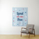 Elegante diseño patriótico del diseño de carteles de fondo de fotos de fiesta de vacaciones del 4 de julio, presenta un diseño de texto de escritura de escritura "Tierra de los libres" en colores rojo, blanco, azul y azul marino con acentos estrella y color de fondo azul claro.