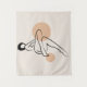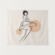 Un minimalista ilustracion de arte de línea de una figura femenina reclinada, que capta una sensación de relajación y facilidad. Los círculos suaves y de tonalidad tierra añaden calidez y equilibrio a la composición. Ideal para los amantes de la decoración sencilla, moderna y elegante.