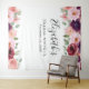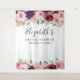 Elegante tapiz personalizado para cabina de fotos para tu despedida de soltera con rosas acuarela y flores de burgundy y tu nombre en una tipografía elegante. Puedes personalizar aún más con la fecha de tu evento.