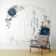 Fondo de foto de ducha de novia floral azul marino oscuro con elegante ramo de flores azules marinas, azul real, blanco, dorado, champán marfil, rosa rosa, rosa hydrangea, ranunculus, peonía, capullos de flores y hojas de eucalipto verde salvia y elegante marco geométrico neutro con brillo de acuarela. Por favor, contácteme para cualquier ayuda en personalización o si necesita cualquier otro producto con este diseño.