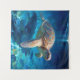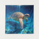 Una vibrante pintura digital de una tortuga marina deslizándose con gracia a través de aguas cristalinas del océano, iluminadas por rayos solares desde arriba. El caparazón detallado de la tortuga y las aletas de tono cálido contrastan maravillosamente con el azul profundo y rico del océano, capturando un momento submarino pacífico.