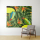 Tejidos tropicales de pared con tocanes y pájaros de gráficos paradisíacos.