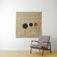 Un trío de tres puntos sobre un fondo de color crema y beige taupe irregular con estampado. Dos de los puntos son negros y uno es de color naranja oxidado/tostado. Ideal para una decoración casera contemporánea o minimalista.