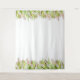 Elegante y simple. Esta tapicería de fondo para fotos de boda incluye tulipanes rosados con hojas verdes exuberantes en una textura de acuarela que le da un estilo fresco y moderno.