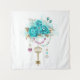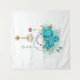 Antique gold key with trendy turquoise roses decorated with leaves of white gold and pink and blue beads. Fashionable color. Turquoise roses. White gold. Blue tiffany.
