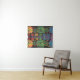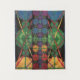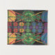 La obra de arte de la imagen es un diseño geométrico vibrante e intrincado. Presenta una serie de formas y patrones interconectados, compuestos principalmente de círculos, triángulos y líneas. El diseño es simétrico y se extiende horizontalmente sobre un fondo negro. Los círculos están llenos de varios colores, como el violeta, el azul, el verde, el amarillo y el rojo, lo que crea un efecto degradado de un extremo a otro. Cada círculo se intersecta por líneas que forman patrones de tipo estrella, y los círculos están conectados por una red de líneas que crean un sentido de profundidad y complejidad. El conjunto es visualmente llamativo, los colores vivos contrastan con el fondo oscuro, por lo que los motivos geométricos destacan de forma destacada. Esta obra de arte es interesante debido a su uso de simetría, degradados de color y trabajo de línea intrincado, que juntos crean una experiencia visual dinámica y atractiva.