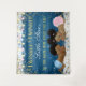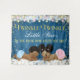 Twinkle twinkle pequeño estrella de la ducha de bebé fondo con adorable bebé afroamericano y chica usando lindos trajes rosados y azules en una hermosa nube azul y fondo estrella. Este lindo banner de ducha de bebé de una pequeña estrella con dos gilias se personaliza fácilmente con el texto de su elección.
