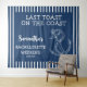 tela personalizada con tema costero náutico para fiesta de soltera en azul marino y blanco con un ancla es perfecta como telón de fondo para fotos de la fiesta de soltera. Con el eslogan "último brindis en la costa". Celebre su despedida de soltera con estilo con el tema perfecto de fiesta de playa náutica en rosa intenso, el tema perfecto para la novia marinera vintage nostálgica y sus damas de honor.