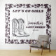 tela personalizada con tema de cowgirl occidental para fiesta de despedida de soltera en formas inspiradas en Matisse en negro y blanco con botas de vaquero es perfecta como fondo de fotos para despedida de soltera. Personalizado con tu nombre y el lema "último rodeo". Celebra tu fiesta de compromiso en estilo con el tema perfecto de fiesta country occidental, el tema perfecto para la amante de los caballos, la novia cowgirl con tema del Salvaje Oeste vintage y sus damas de honor.