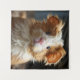 Un lindo conejillo de Indias Texels rizado, su suave piel brillando a la luz del sol. El conejillo de Indias es de un color marrón profundo, con rachas de blanco y amarillo. La piel está perfectamente curvada, como una masa de encaje vivo.