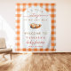 Un pequeño plato de color Cae Regalo de bienvenida de Baby Shower - Decoraciones de Baby Shower de Photo Booth Decor - Tema de otoño floral, especias de calabaza, diseño de acuarela rústico ¿Buscando el diseño perfecto otoño de la ducha de bebé de bienvenida? Nuestro tapiz de carteles de bienvenida de "A Little Cutie Pie" con flores para bebés está diseñado para llevar todas las vibraciones de otoño a su celebración. Ideal para una rociada de septiembre, una ducha de bebé en octubre o una ducha de bebé en Acción de Gracias, este cartel de bienvenida combina el encanto rústico con la elegancia de temporada. Ilustraciones de color de agua de un latte de especias de calabaza y un trozo de tarta de calabaza Suave naranja gingham fondo y un diseño arqueado a la moda Diseño elegante de escritura caligrafía para un ambiente rústico moderno Una paleta cálida y acogedora de colores otoño clásicos naranja, marrón y crema Perfecto para duchas de bebé de otoño no halloween, este signo de entrada es perfecto para Ducha de bebé chica, ducha de bebé para niños o duchas de bebé con un enfoque neutro en cuanto al género. Ya sea que esté planeando una ducha de bebé rústica, una ducha de bebé de tipo boho o un evento acogedor de estilo casa de campo, este cartel de bienvenida para una ducha de bebé da la bienvenida a sus huéspedes con un estilo de temporada y un diseño cuidado.