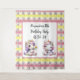 La imagen frontal muestra dos unicornios felices, con margaritas, sobre un fondo degradado. El texto de esta imagen es personalizable. Detrás de la imagen frontal hay un patrón que incluye los 2 unicornios felices sobre un fondo degradado. Las imágenes están en colores pastel. ¡Perfecto para incluir en un evento con tema de unicornios!