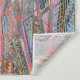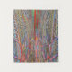 La obra de arte es una pintura abstracta vibrante e intrincada que presenta una composición simétrica con una variedad de patrones geométricos y colores vivos. La parte central de la pintura está dominada por ramas verticales de rojo, verde y azul, que crean una sensación de profundidad y movimiento. Alrededor de estas franjas centrales se encuentran numerosas formas triangulares y rectangulares con complejos patrones tipo entramado de colores como amarillo, blanco, azul y naranja. Estas formas están dispuestas de manera que se crea una sensación de simetría y equilibrio, dibujando el ojo del espectador hacia el centro de la pieza. La pintura también incluye varios elementos que se parecen a estructuras o marcos arquitectónicos, con líneas entrecruzadas y patrones de cuadrícula que aumentan la complejidad del diseño. Cerca de la parte inferior de la obra, hay formas circulares con diseños llamativos y un símbolo yin-yang, añadiendo un elemento de misticismo o simbolismo a la pieza. En general, la obra es interesante por su composición detallada y estratificada, el uso de colores vibrantes y la incorporación de elementos geométricos y simbólicos que invitan al espectador a explorar e interpretar la pieza de varias maneras.