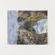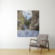 Fotografía paisajística de un hermoso valle en Gozd Martuljek, Eslovenia, con nieve cubriendo rocas cerca del río y las montañas en el fondo.