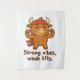 Trae humor al gimnasio a tu espacio con el entrenador Bullio, nuestro adorable aspirante a salvador que es todo flex, ¡no hay fuerza! Este tapiz muestra a Bullio exhibiendo orgullosamente sus "músculos" con el eslogan "Vibes fuertes, Levantamientos débiles". Una adición divertida y alegre a cualquier habitación, dormitorio o pared de gimnasio. Perfecto para los aficionados al fitness que aman una buena risa, bestias de bebé en entrenamiento, o cualquiera que levante más botellas de leche que campanas sucias. Este artículo es parte de la colección de la Escuela de Bestias Bebés del entrenador Bullio, ¡un tributo a las vibraciones de gimnasia sin el levantamiento pesado!