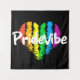 Transforme su espacio con el tapiz Vibrant PrideVibe de Sarendestini Designs. Con el atractivo logo de Rainbow Heart PrideVibe sobre un elegante fondo negro, este tapiz le da un toque atrevido y vibrante a cualquier habitación. Perfecto para crear un punto central en tu espacio vital o como una pared colgada significativa, es una manera elegante de celebrar orgullo, inclusión y amor en tu decoración de casa.