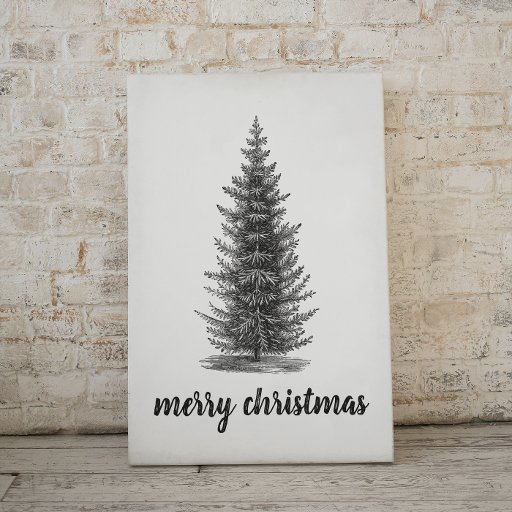 Navidades rústicos vintage Tapiz con un ilustracion de un árbol de navidad de abeto noruego. Una casa de campo rústica, minimalista, neutra, de diseño de navidades blancos.