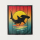 Tiburón martillo martillo de sol vintage en el paisaje oceánico ondulado.