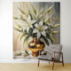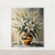 imagen de esta flor Seguro, aquí hay un cuadro acuarela de lirios blancos en un jarrón dorado, bañado por una luz cálida, con pinceles intrincados y detallados, representadas en una definición ultra alta de 8K y un enfoque nítido: