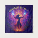 Dit wandkleed ademt de essentie van ecstatic dance — vrijheid, beweging en verbinding. In het midden danst een vrouw in een veld van licht en kleur, omringd door heilige geometrie die energie in balans brengt. Haar houding weerspiegelt overgave aan het moment, de dans als gebed.