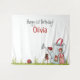 Cuidados, niñitas y personalizadas, alegres tapices de nacimiento del primer cumpleaños; con una adorable mariquita chica sentada en columpio, colgada de una adorable caseta de agua del jardín, dos ladybugs más se unen a esta escena de fiestas de jardín, mágica y caprichosa. Personalice este hermoso telón de fondo de la fiesta de cumpleaños con el nombre del chica y el saludo personalizar según sea necesario.