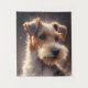 Esta imagen titulada "Wire Hair Fox Terrier Twilight" es un retrato cálido y atractivo que captura perfectamente el encanto de un joven Wire Hair Fox Terrier. Con un suave crepúsculo, los suaves rayos del sol acentúan los tonos tierra del abrigo del perro. El joven zorro terrier, acosado por una serena quietud, parece estar atrapado en un momento tranquilo de contemplación, un momento tranquilo capturado mientras sus ojos conmovedores reflejan un mundo lleno de curiosidad y asombro. generativo y coherente