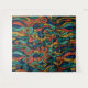 Es vibrante y llamativo, con un patrón paisajista colorido que da la impresión de estar tejido a partir de numerosas hilas de lana. La paleta de colores está formada por cuatro colores distintos y animados. En general, el diseño es una deliciosa combinación de colores y patrones, con un ambiente animado y lúdico, manteniendo al mismo tiempo una sensación de sofisticación y calidez. Es perfecto para añadir un toque de fantasía y creatividad a varios productos y ambientes, desde textiles y moda hasta decoración interior y obras de arte.