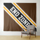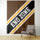 Este diseño deportivo presenta el texto atlético END ZONE dentro de una diagonal ancha realzada de rayas de carreras en blanco, negro y amarillo dorado contra bandas anchas y negritas en las bandas externas. El texto de este diseño se puede personalizar.