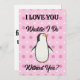 Tarareo que hago sin ti diseño con gráfico de pingüino con lunares en fondo rosa. Saludo interior personalizable.