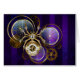 Araña de acero de oro y acero con relojes antiguos decorados con artes dorados sobre el fondo morado, rayado, texturado con lentes y engranajes de latón. Estilo Steampunk.