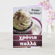 Card dice "χ ρ ό ν α π~ Burn" para desear un feliz cumpleaños.