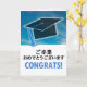 Una tarjeta de graduación de felicitaciones en japonés. La tarjeta dice "ご 卒 業 お め と htsniht› ~›" que significa "Felicitaciones en tu graduación".
