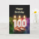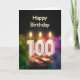 Una torta de torta de cumpleaños con velas. Las velas están compuestas por el número 100, por 100 años. Una tarjeta de cumpleaños para todos.