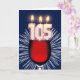 Una copa de vino de cumpleaños con velas. Las velas están compuestas por el número 105, por 105 años. Los fuegos artificiales están explotando en el fondo. Una tarjeta de cumpleaños adecuada para cualquier persona, hombre o mujer.