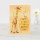 Esta jirafa está parada alta y sonriendo a un pequeño pájaro sosteniendo un globo. Es tu décimo cumpleaños escrito en un tipo de letra a la moda con dos flechas sobre el fondo de un lavado de acuarela. Tarjeta perfecta para un cumpleaños de 10 años.