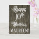 La parte delantera de este diseño formal y lujoso de tarjetas de felicitación de cumpleaños muestra el mensaje "Feliz décimo cumpleaños", en un texto de estilo de escritura opulento. En la parte delantera también hay un nombre de destinatario editable y un patrón de fondo de aspecto de madera falso. El interior tiene un mensaje de bienvenida de cumpleaños de personalizable, o tal vez podría ser borrado y dejado en blanco si un mensaje se va a escribir a mano en su lugar. Una elegante tarjeta de felicitación personalizada de cumpleaños como esta podría ser usada para reconocer el décimo cumpleaños de alguien. [~Z0000556]