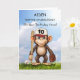 ¡Haz que el décimo cumpleaños de tu nieto sea aún más especial con una tarjeta de béisbol personalizada! Un mono divertido, listo para jugar con su murciélago y guante, se alza contra un cielo azul brillante, lo que coloca la escena para un día de celebración. Personalizar el frente con su nombre por un toque personal, creando un aguijón que apreciará. Ideal para los deportistas de 10 años.