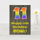 Tarjeta 11º Cumpleaños: Aspecto de Madera Rústica Falsa, "