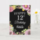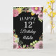 12.ª acuarela Floral Floral Flowers Black Card con nombre y edad personalizados. Para una mayor personalización, haga clic en el botón "Personalizar" y utilice nuestra herramienta de diseño para modificar esta plantilla.