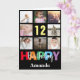 Tarjeta 12.º feliz cumpleaños Collage de fotos negro moder