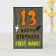 La parte delantera de este espeluznante y aterrador diseño de tarjetas de felicitación temática de cumpleaños de Halloween incluye un gran número "13", junto con el mensaje "FELIZ CUMPLEAÑOS", y un nombre personalizado. También hay representaciones de un fantasma y un murciélago en el frente. El interior presenta un mensaje de bienvenida de cumpleaños modificable, o tal vez podría ser borrado y dejado en blanco si se va a escribir un mensaje a mano. Una tarjeta de cumpleaños personalizada como esta podría ser una manera divertida de enviar deseos de cumpleaños a alguien que está celebrando su décimo tercer cumpleaños y que también nació en Halloween (31 de octubre). [~Z0000410]