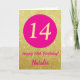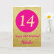 14ª tarjeta Purpurina Happy Birthday Hot Pink and Gold con nombre personalizado. Para una mayor personalización, haga clic en el botón "Personalizar" y utilice nuestra herramienta de diseño para modificar esta plantilla.