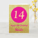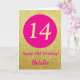 Tarjeta 14.ª feliz cumpleaños Purpurina de oro y rosado ca