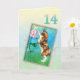 Tarjeta 14.º cumpleaños con un gato juguetón