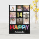 Tarjeta 14.º feliz cumpleaños Collage de fotos negro moder