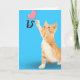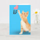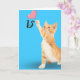 Gato de tabby dorado con globo de corazón rosado por 15 años en un fondo turquesa. Se puede cambiar el color de fondo.
