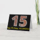 El frente de este diseño de tarjeta de felicitación con tema de cumpleaños presenta un gran número "15" con un patrón de pared de ladrillos marrón rojizo, junto con el mensaje "Feliz cumpleaños 15" y un nombre editable. El interior presenta un mensaje de felicitación de cumpleaños personalizado, o quizás podría estar despejado y dejado en blanco si se desea escribir un mensaje a mano. Una tarjeta de cumpleaños personalizada como esta podría ser una forma divertida de enviar deseos de cumpleaños a alguien que está celebrando su decimoquinto cumpleaños.