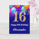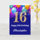 Tarjeta 16.º Balón azul y dorado de la marina de cumpleaño