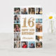 Tarjeta 16.º Collage de fotos blanco y oro feliz cumpleaño